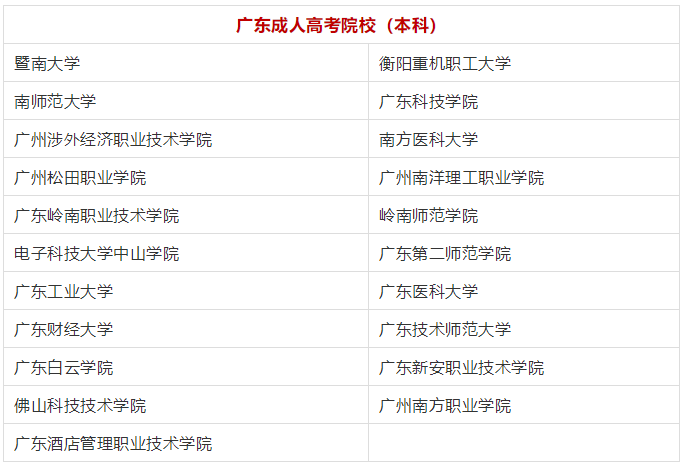 广东成人高考本科院校有哪些?